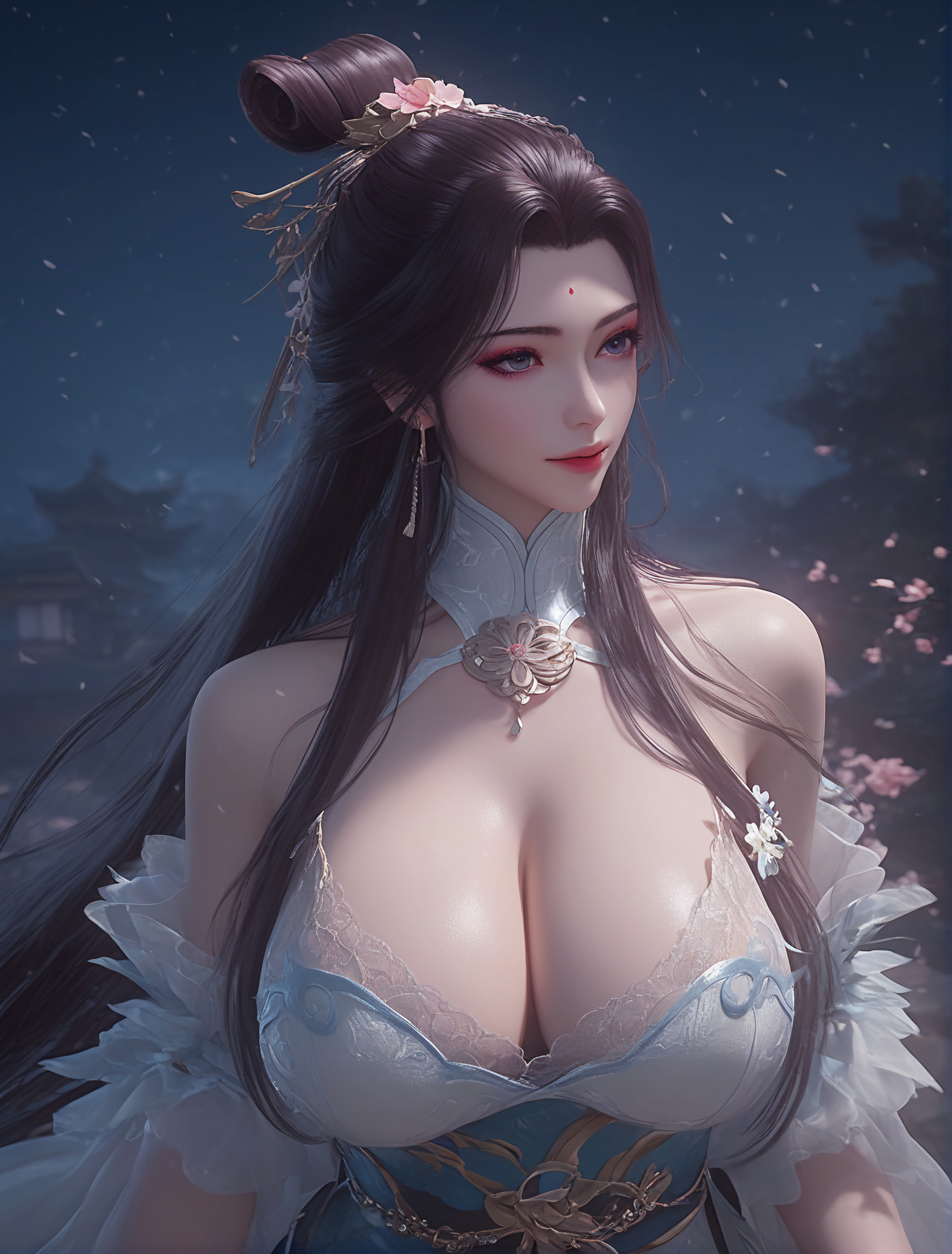 一袭月白色广袖流仙裙,衣袂翻飞间似有雪花萦绕。