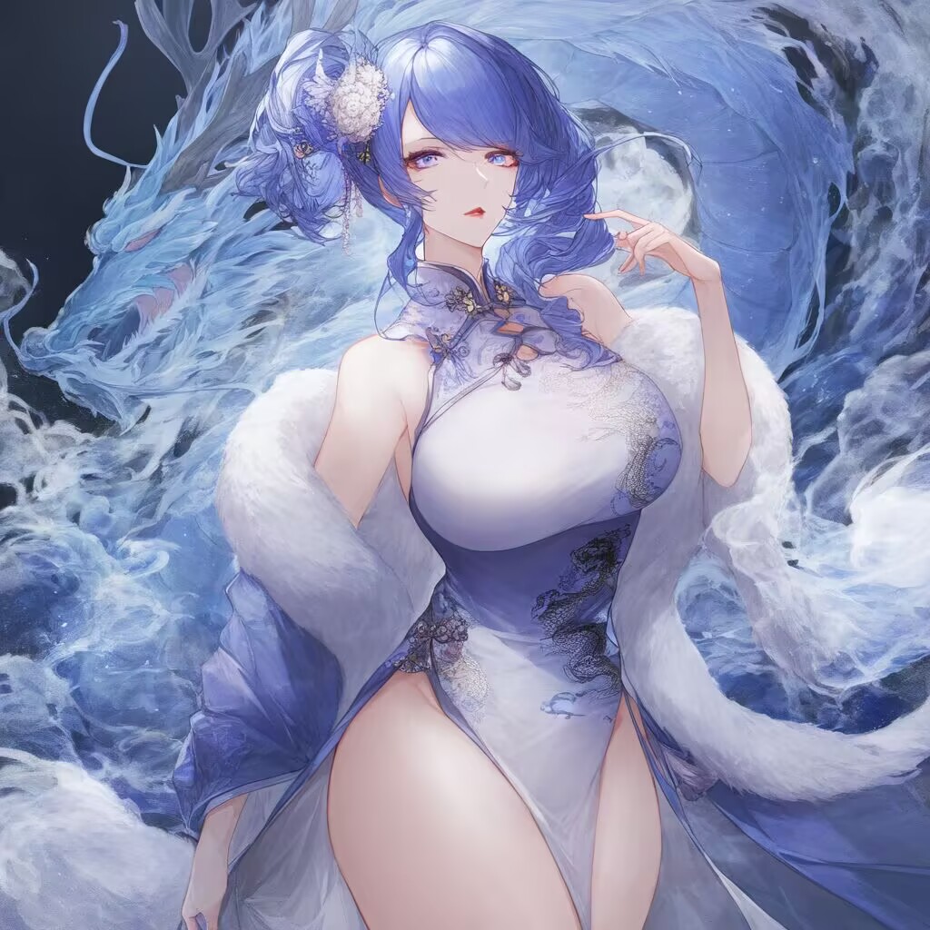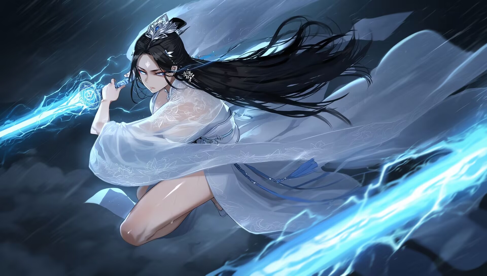 三千青丝仅用一根冰晶簪子松松挽起,余下如瀑般垂落腰间。