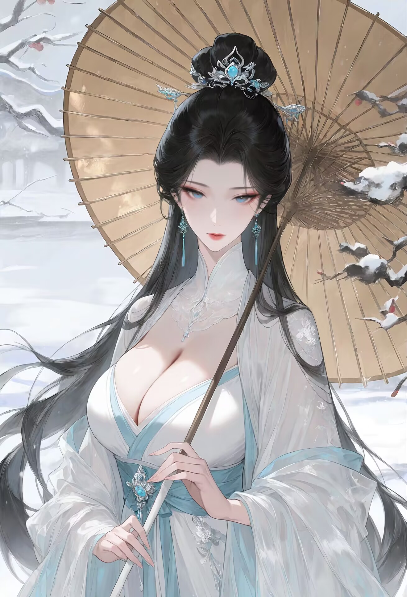 最令人心惊的是她的面容,眉如远山含雪,眸似寒潭凝冰,唇若霜花点绛,