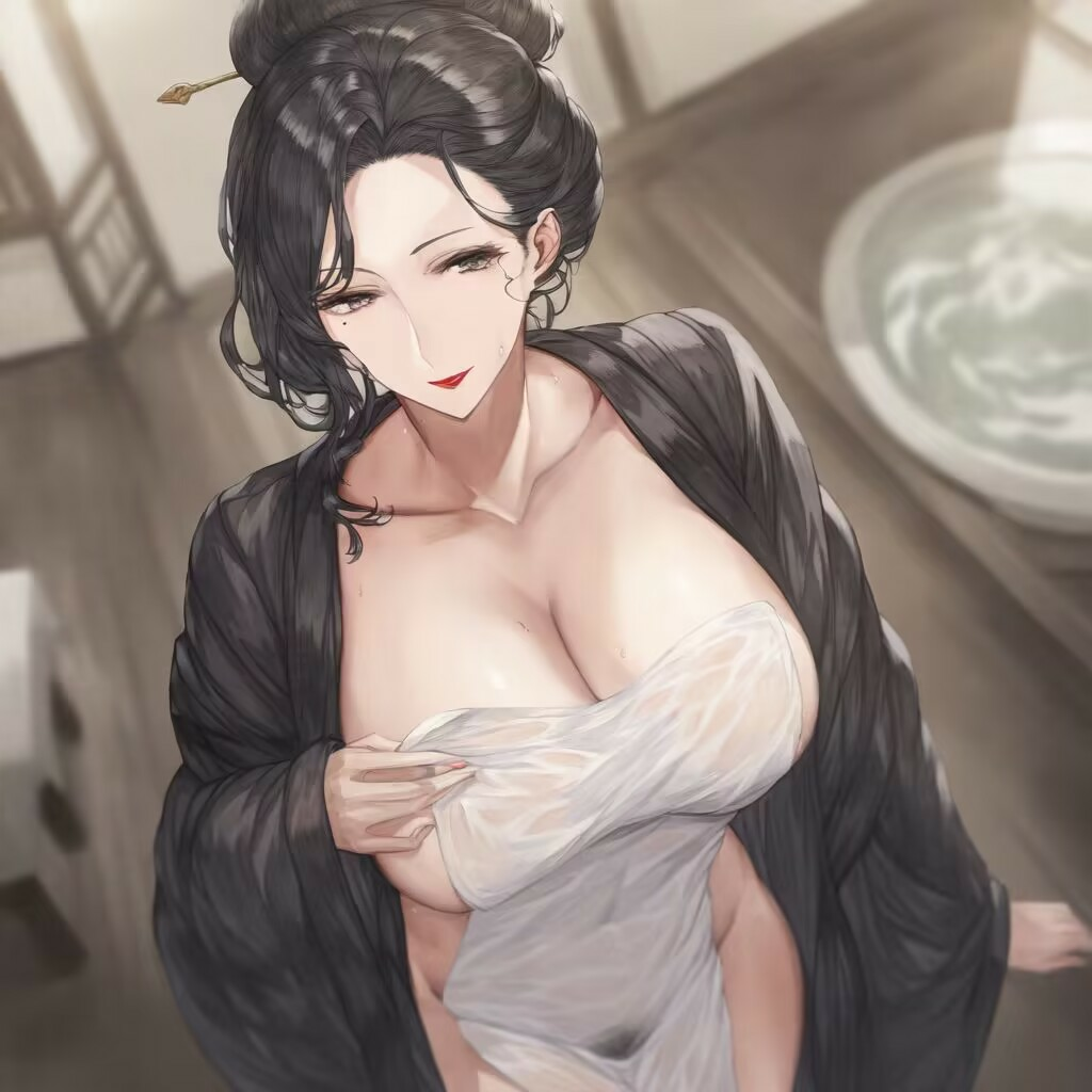 被水汽沁润的浴衣几乎无法掩盖她那凹凸有致的妙曼身姿,胸前的丰盈呼之欲出,