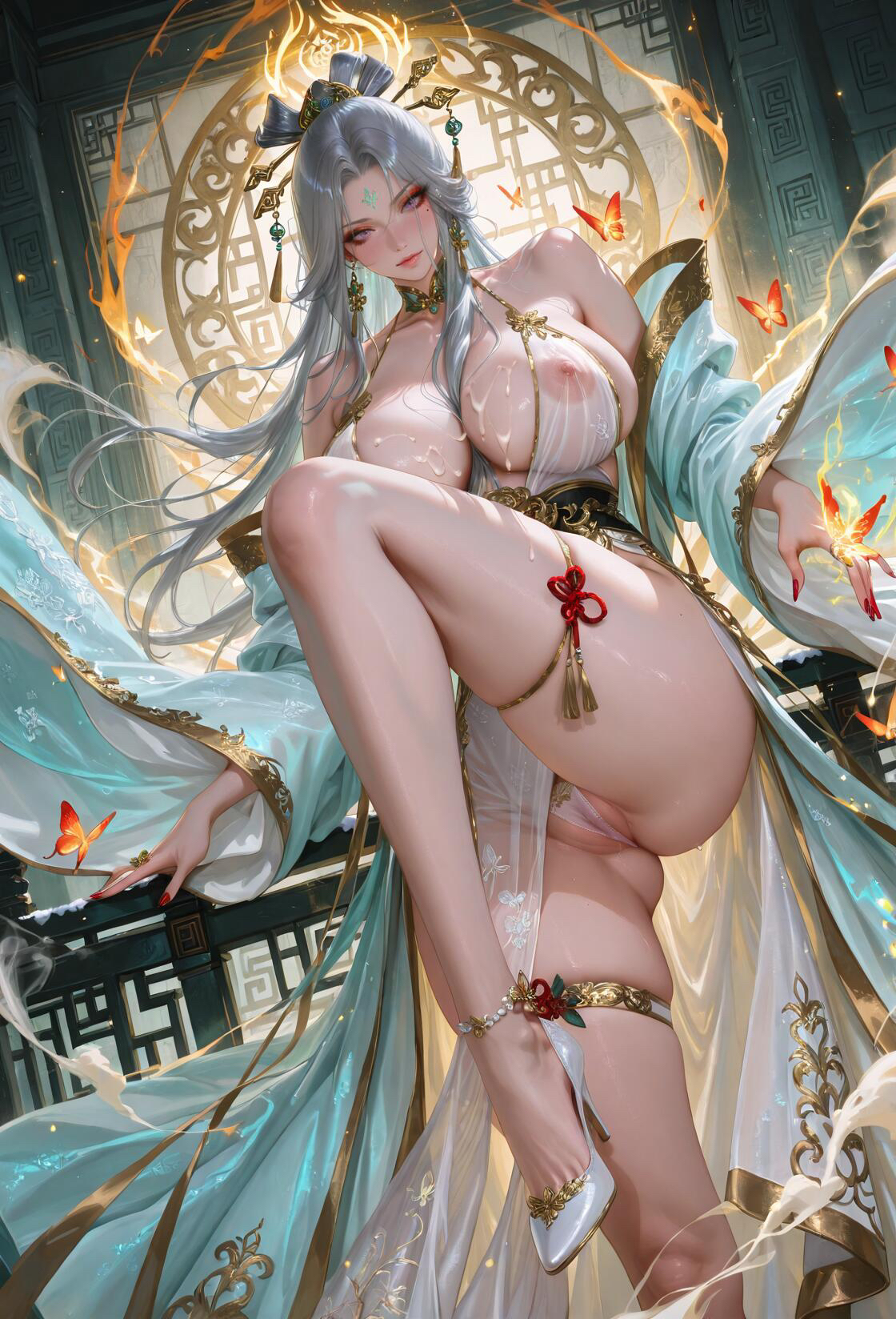 她步伐轻盈,仙裙随风微摆,勾勒出那凹凸有致的背影。